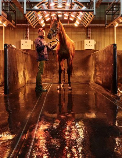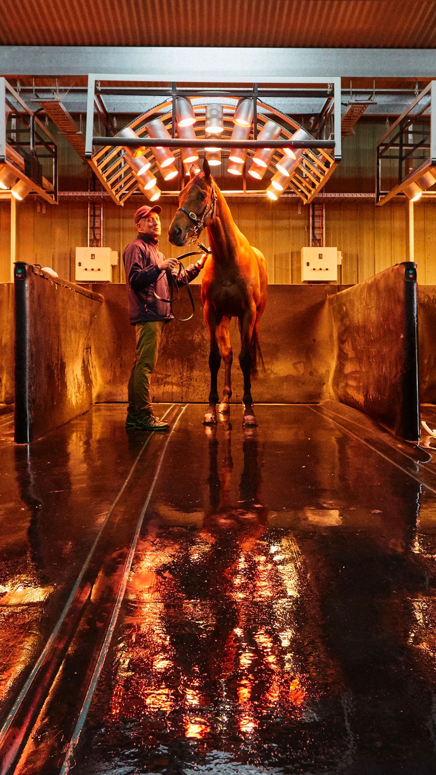 The barn facilitates a number of benefits to help get the most out of your horse including a straight swimming pool, treadmills, a water walker, horse spas, horse solarium and a dry walker.